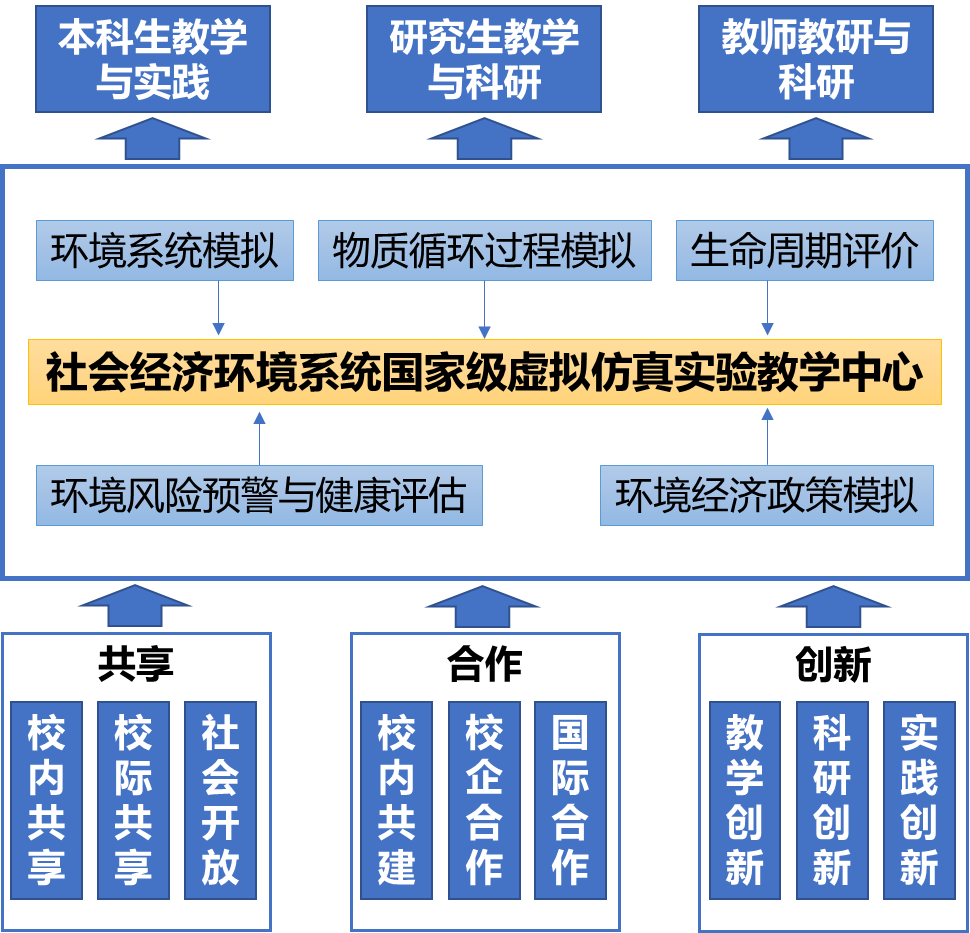 中心可开设10多个环境系统虚拟仿真实验项目,涵盖了水环境质量模拟、大气环境质量模拟、污染物排放清单构建、物质循环过程模拟、环境健康与风险评估、环境经济政策模拟、生命周期环境影响评价等模块,为大气环境学、水环境学、环境管理、环境规划、环境系统分析、环境风险管理、环境政策分析、环境经济学等课程提供了虚拟仿真实验平台。不但成为本科生相关课程的虚拟仿真实验教学工具,而且成为研究生和教师科研提供虚拟仿真实验研究平台,更为大学生创新计划、挑战杯创业大赛等本科生创新实践活动提供了强有力的支撑。