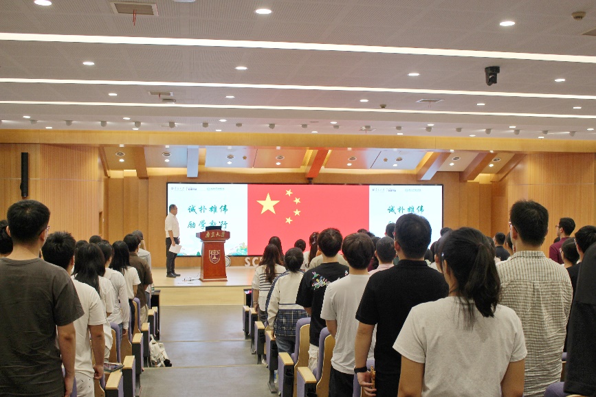 开学典礼在庄严的国歌声中拉开序幕。