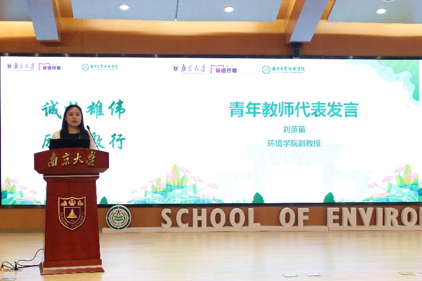 青年教师代表刘苗苗向2025级研究生表示欢迎,希望同学们以开放之姿拥抱环境学科新机遇,将机遇化为成长的阶梯;以清醒之态正视跨学科竞争挑战,提升系统性、交叉性和综合性的优势;以求知之心砥砺前行,书写无愧于时代的青春篇章。