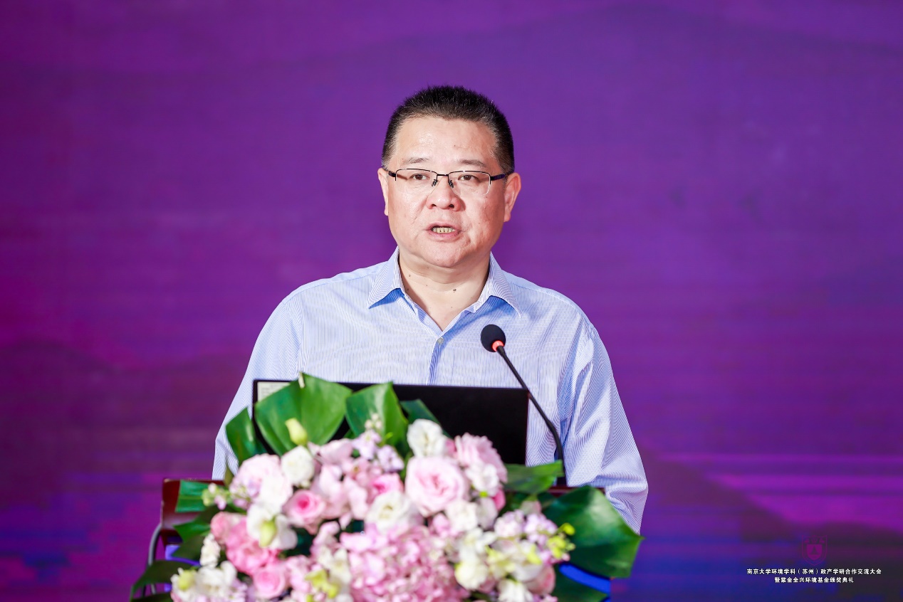 苏州市委常委、副市长唐晓东在致辞中指出,苏州将充分用好政产学研合作交流平台,探索新机制、新模式,围绕生态环境保护、产业发展、成果转化等方面重点发力,加强党建联盟、多方合作,把政府的组织协调优势、南大的学术研究实力和市场的产业创新活力充分结合,不断提升高等教育对产业发展和城市发展的引领支撑作用,进一步推进校地深度融合,合力推动生态文明建设和绿色低碳产业发展不断迈上新台阶。