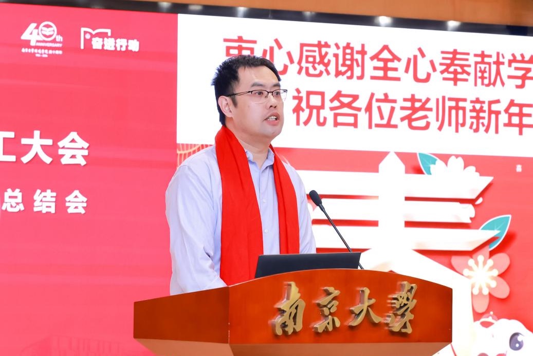 刘建萍书记围绕"党建引领促发展、砥砺奋进谱新篇"作党委年度工作报告。报告从聚焦"对标争先"、落实"奋进行动"、突出"感恩表彰"等方面,详细介绍了学院党委在提升党建工作质量、服务学科建设事业发展以及携手奋进谱写崭新篇章的具体举措与显著成效。刘书记表示,过去一年,全体教职工齐心协力、辛勤耕耘,取得了丰硕的成果:学院荣获全国教育系统先进集体、南京大学先进集体;队伍建设成效显著,新增国家级领军人才2人、国家级青年人才7人;学生在全国百名研究生党员标兵、江苏省优秀学位论文、"挑战杯"及中国国际大学生创新大赛等评选和竞赛中取得佳绩;作为通讯作者单位发表南京大学学科卓越期刊论文108篇(含Nature子刊13篇和PNAS 1篇),获生态环境部环境保护科学技术奖2项及青年科学家奖1项、日内瓦国际发明奖3项;与生态环境部南京环境科学研究所共同主办的Eco-Environment & Health(EEH)期刊获ESCI收录并入选中国科技期刊卓越行动计划二期项目高起点新刊。刘书记代表学院党委对南京大学环境规划设计研究院集团及环境行业校友会、优秀教师支部书记、教育教学教改先进、综合事务表现突出及年度优秀教职工等集体和个人进行了表彰。